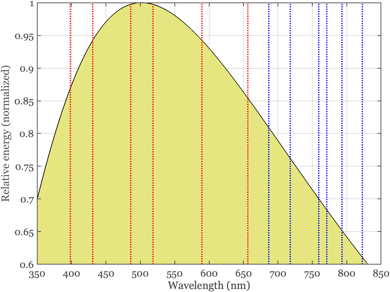 In 1814, Joseph Fraunhofer observed and carefully documented numerous dark lines in the solar spectrum, now known as Fraunhofer lines. It was subsequently discovered that these lines are present because light generated in the Sun’s hot, dense interior (photosphere) travels through its cooler outer layers (chromosphere and corona). During this passage, atoms and ions absorb specific wavelengths of light that correspond precisely to their electron transitions. The reliability of these solar absorption lines allows scientists to use them as reference points to calibrate laboratory instruments for spectral measurements. For example, James Clerk Maxwell used these lines to calibrate the first experimental rig for human color-matching (Maxwell (1860),Maxwell and Zaidi (1993)).