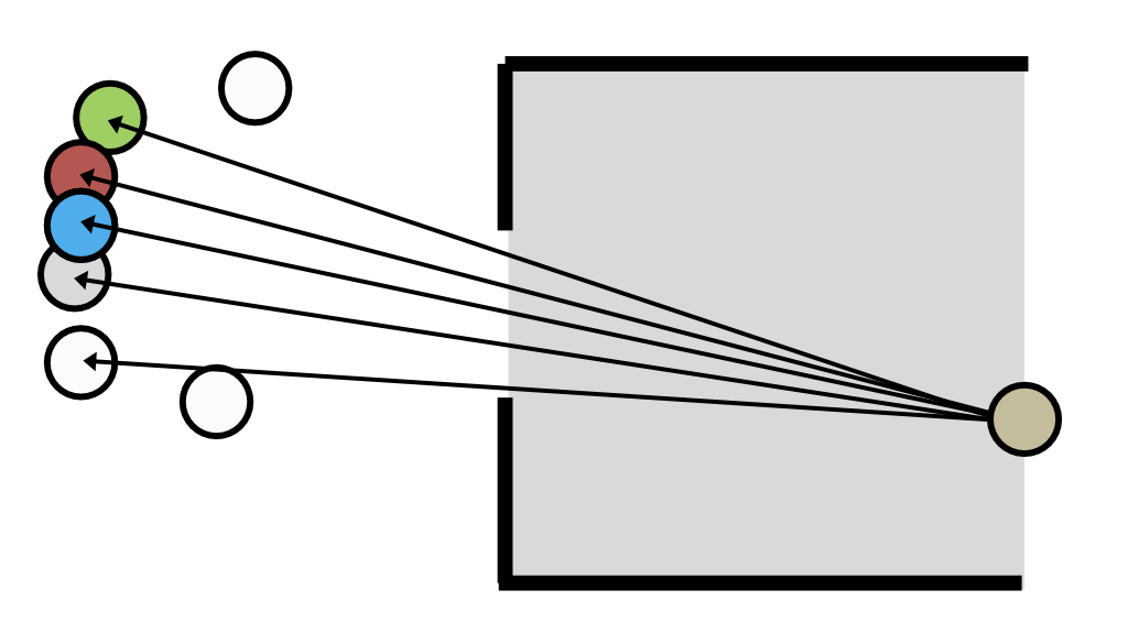 Useful as the ray model has been, for more than 300 years scientists have known that geometric optics is not completely accurate. Consider the simple prediction of the ray model in Figure 7.7. The parallel rays from a point source should pass through the pinhole and continue in a straight line, forming an image the size of the pinhole. An observer to the side should see only darkness, as no rays are heading toward their eyes.