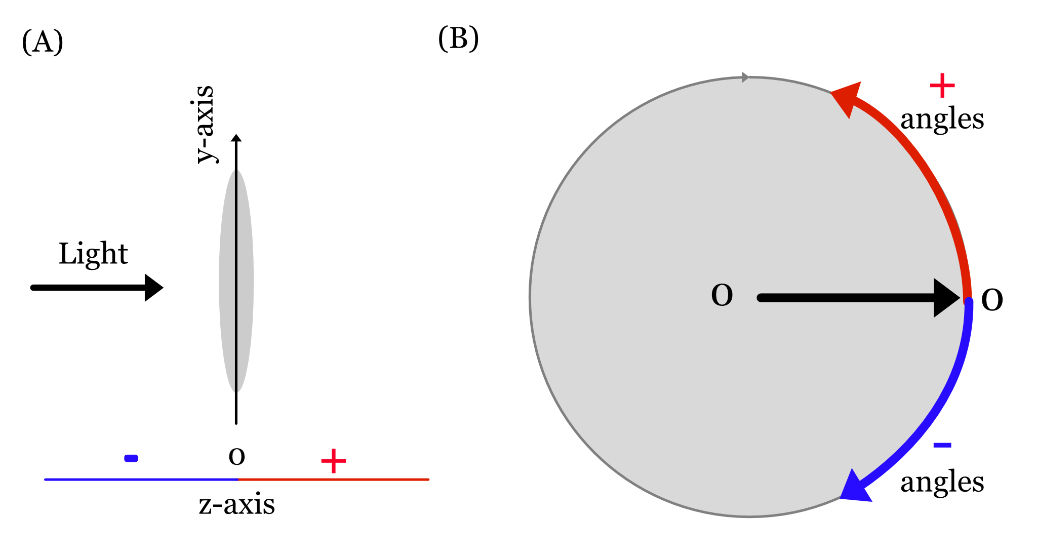 Consistent with general lens coordinates (Figure 9.1), the radius of curvature is positive if its center of curvature is on the side of the outgoing light (typically to the right). It is negative if the center of curvature is on the side of the incoming light (typically to the left). In Figure 9.2, the left surface of the biconvex lens has a positive radius of curvature, while the right surface has a negative radius of curvature.