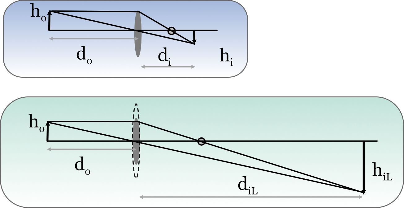 and dividing by \(d_i\) we have the lens formula
