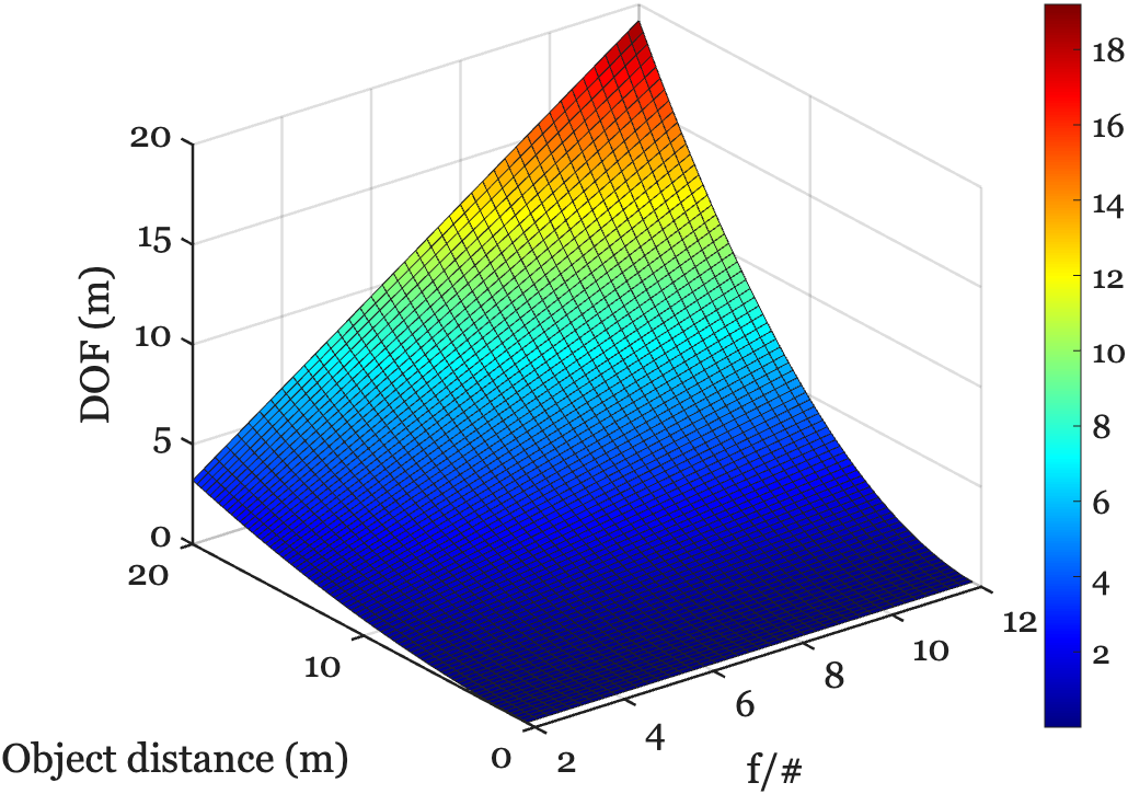 \[ \text{DOF} \approx 2 N C ({\frac{d_o}{f}})^2 \tag{9.6}\]