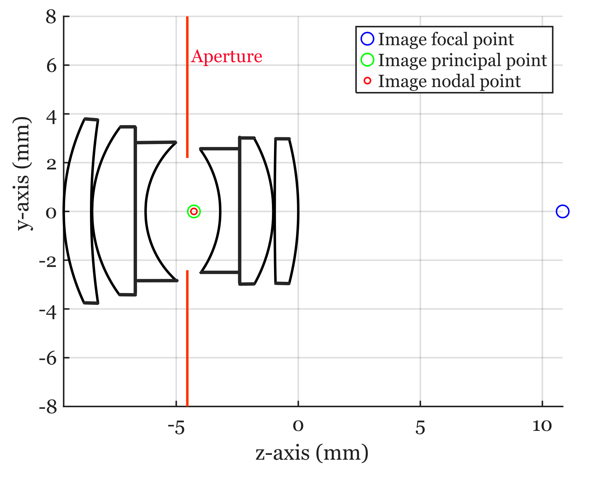 Multi-lens systems can be summarized by their ray transfer matrix. This is a very efficient way to communicate about system properties, though it is quite incomplete compared to a full specification of the components and their materials. Because the lens element are not part of the specification, the this characterization of the lens is often called a black box model of the optics. We know what it does, just not how it does it.