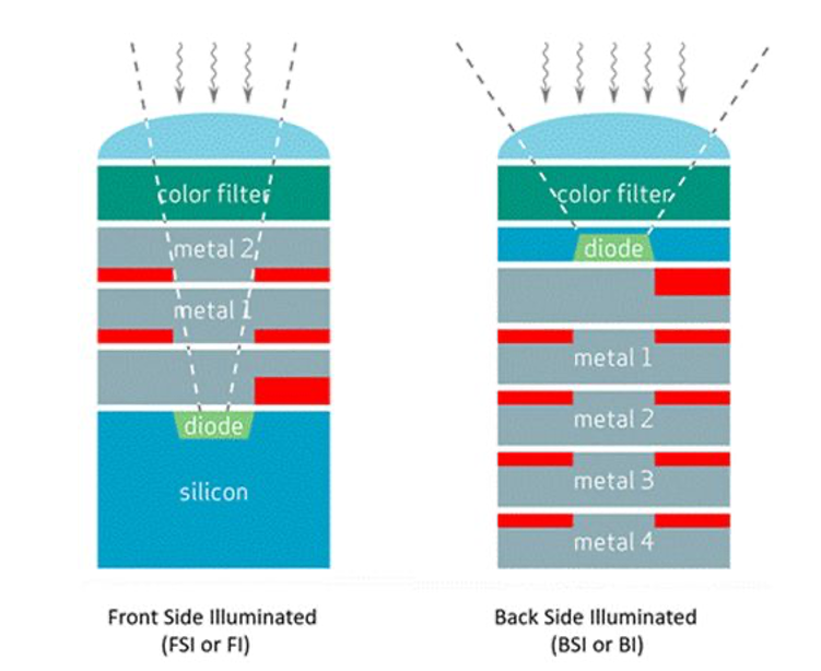 After years of incremental improvements, engineers developed a new architecture to overcome the limitations of front-side illuminated (FSI) sensors. The resulting design, known as Back-Side illuminated (BSI) CMOS, rearranges the device layers to improve sensitivity. In BSI sensors, the photodiode and wiring layers are flipped; the light no longer needs to pass through the wires.