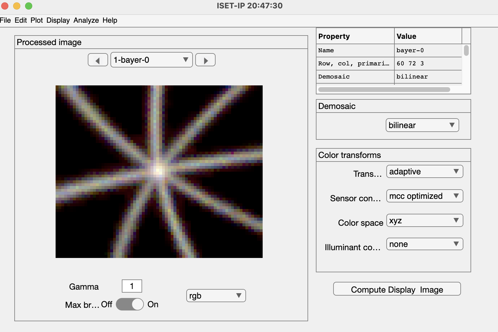 This ISETCam script simulates a rolling shutter. The timing and spatial parameter details of the sensor are included.