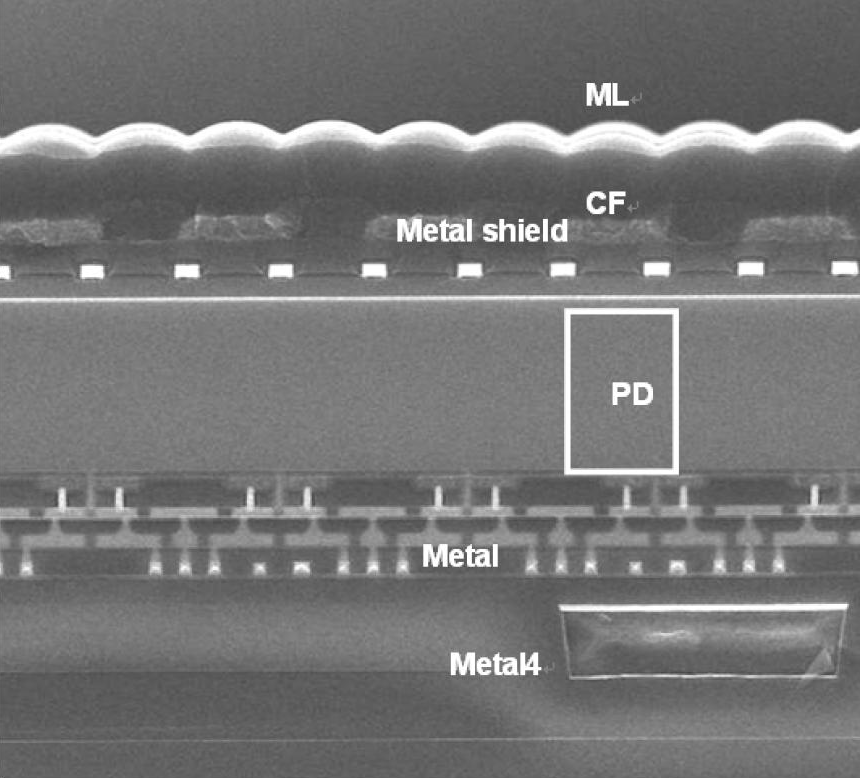 Here is an SEM cross section of an early BSI sensor from Sony. You can see the photodetector (PD) is close to the microlens array level without all the intervening metal layers.